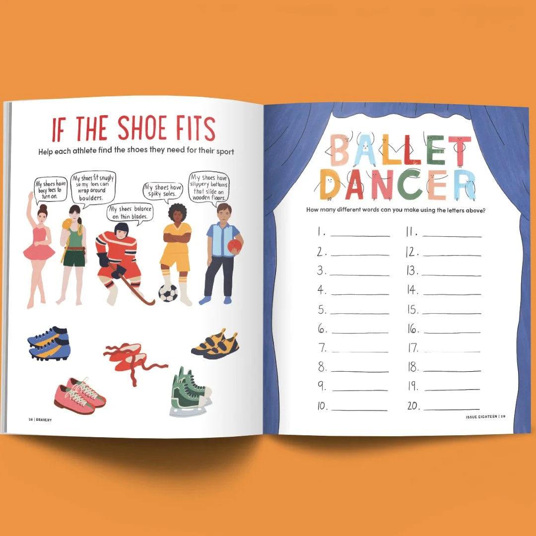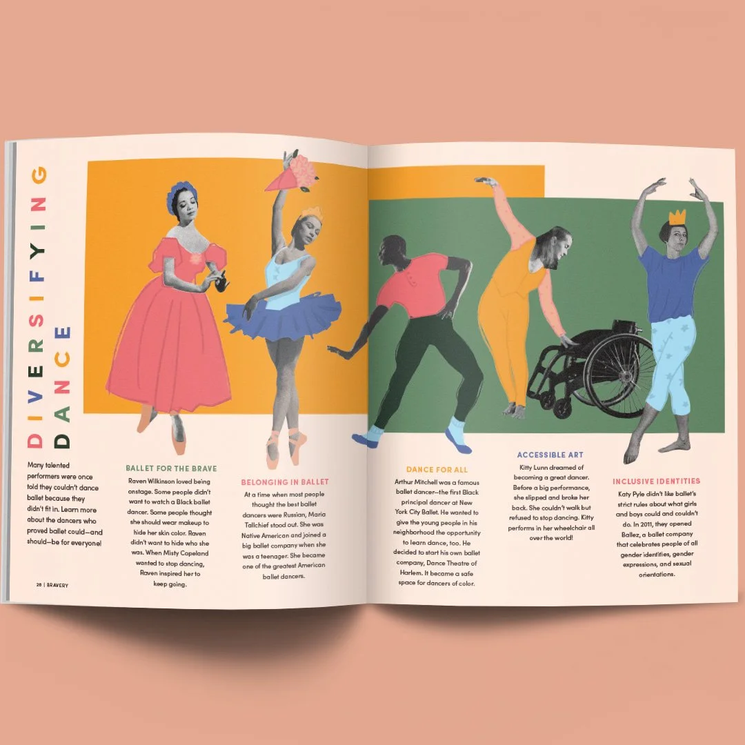 I was the lead designer for Bravery Magazine - a children’s publication highlighting women from history. This included everything from typesetting, illustration, layout design, and all backend print production. This was a highly collaborative project, working with both writers and illustrators.